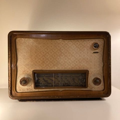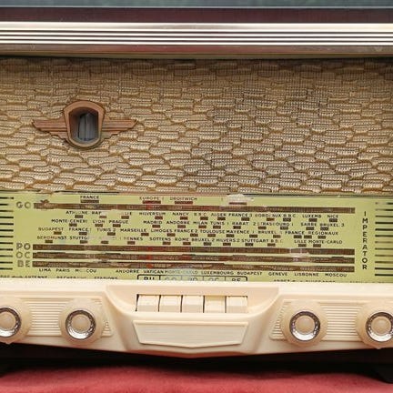 Murphy EU102 radio fra 1946 i fremragende fysisk stand og testet og funktionsdygtig, vægt 8 kg, dimensioner 430 × 265 × 190 mm. Klik på den blå "gå til varen" knap, for at købe eller byde på denne vare. Den samlede pris vil blive vist inden du afgiver dit bud.