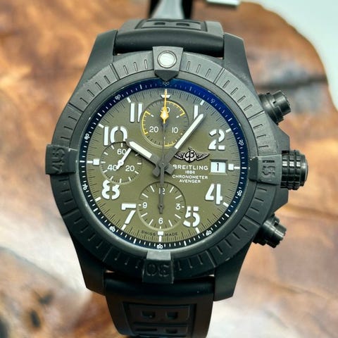 Breitling Super Avenger Black Limited Edition (ref. M1337010/B930) er en herremodel automatisk ur i stål, 48 mm i diameter, fra perioden 2000–2010, med gummirem, i meget god stand med mindre brugsspor, forsendelse forsikret og uden æske eller papirer. Klik på den blå "gå til varen" knap, for at købe eller byde på denne vare. Den samlede pris vil blive vist inden du afgiver dit bud.