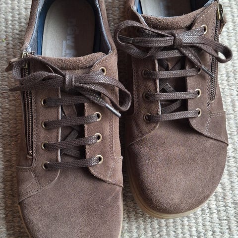Klassisk sko fra New Feet lavet i natur farvet kalveskind med struktur, skoen reguleres efter foden med snørebånd på fronten og har en funktionel lynlås på ydersiden af skoen, som gør det nemt at tage den på foden. Indvendigt er skoen foret med OnSteam der absorbere fugt hurtigt og den udtagelige støddæmpende indlægssål på 6 mm giver en fantastisk blød komfort. Skoen er lavet på en letvægts gummisål er er lavet i læst S
