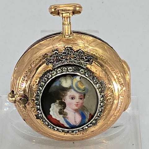 Le Vasseur a Paris, en oignon-ur omkring 1700 med forgyldt kasse, håndoptrukket værk, kassediameter over 50 mm, vægt 156,6 g og lugbredde 80 mm, i meget god stand. Klik på den blå "gå til varen" knap, for at købe eller byde på denne vare. Den samlede pris vil blive vist inden du afgiver dit bud.