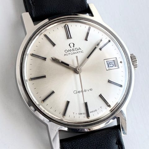 Omega Genève Cal. 601, armbåndsur i 14K gult guld, kasse 33 mm, fremstillet i 1969, reference 131.041, håndoptrukken bevægelse med 17 ædelsten, sort skive restaureret, akrylglas, ny læderrem med forgyldt spænde, meget god vintage stand med få brugsspor, ingen original æske eller papirer, forsendelse forsikret, vandtæthed ikke garanteret. Klik på den blå "gå til varen" knap, for at købe eller byde på denne vare. Den samlede pris vil blive vist inden du afgiver dit bud.