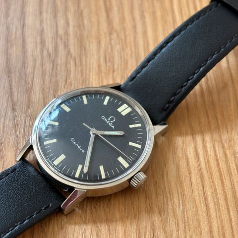 Omega Genève 135.041, en håndoprettet armbanduhr fra 1970'erne med en 34 mm stålkasse, sølvfarvet urskive, læderrem, lug bredde 18 mm, i god stand med synlige brugsspor. Klik på den blå "gå til varen" knap, for at købe eller byde på denne vare. Den samlede pris vil blive vist inden du afgiver dit bud.