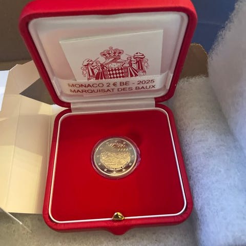 Moneta og emballagen i perfekt stand, se nøje på billederne, som giver et godt indtryk.
