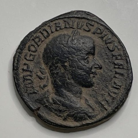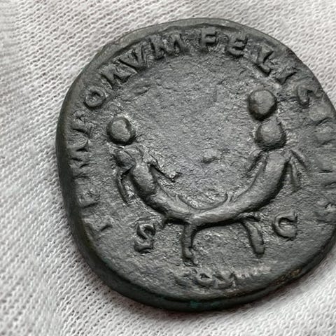 Forside: Kejserens bust med laurbærkrans, vendende mod højre, omkring legendet ANTONINVS AVG PIVS PP TR P XVII. Bagside: Indulgentia sidder på en trone, vendende mod venstre, og holder en lang scepter samt strækker hånden ud. I felterne er bogstaverne SC, omgivet af legendet INDVLGENTIA AVG COS IIII. Bronze, diameter 34 mm, vægt 25,45 g.