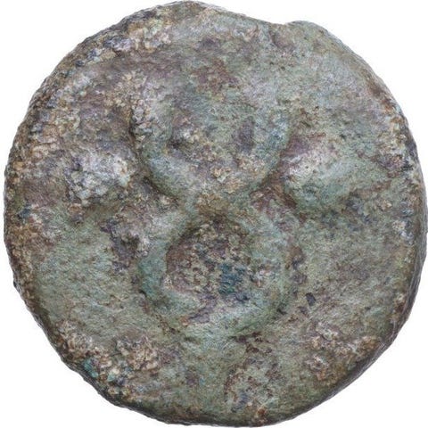 Ugraderet anonymt Romersk Republikk Æ As, 211–206 f.Kr.; laurbærhoved Janus til højre; ROMA øverst på bægeret; vægt 29,9 g, Ø 34 mm; Crawford 56/2. Klik på den blå "gå til varen" knap, for at købe eller byde på denne vare. Den samlede pris vil blive vist inden du afgiver dit bud.
