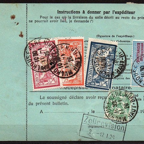 Rejsepostkort med smukke frimærker til luftpost og ikke fra perioden.