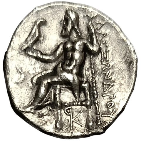Ariarathes V Eusebes Philopator AR-drachme fra Cappadoccien, dateret RY 33 = 130/129 f.Kr., 4 g og 18 mm, obverse med diademet hoved til højre og reverse Athena Nikephoros stående til venstre med spyd og skjold; monogram indeni venstre, T udenfor til højre, ΓΛ i exergue. Klik på den blå "gå til varen" knap, for at købe eller byde på denne vare. Den samlede pris vil blive vist inden du afgiver dit bud.