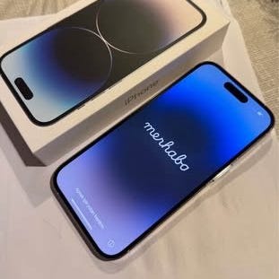 Apple iPhone 14 Pro mobiltelefon med 128 GB lagerplads. Enheden har en sort farve og leveres med original emballage og et beskyttende imag cover. Telefonen kører iOS version 16.0 og har modelnummer MPVX3DNA.