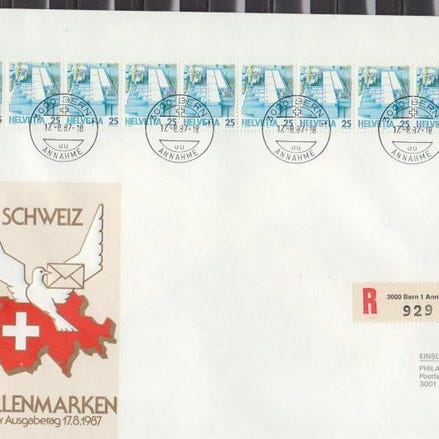 Schweiz' store samling fra 1992 til 2008 omfatter 646 eksklusive, forskellige FDC'er med et bredt udvalg af stempler. Michel 1461-2087 + Automatic 7/16 + BIT/ILO 103/110 + BIE/IBE 35/41 + ONU/UNO 21/39 + OMM/WMO 10/13 + UPU 10/21 + UIT/ITU 10/18 + OMP/WIPO 1/5, uskrevet og cirkuleret. Velegnet til den specialiserede samler.