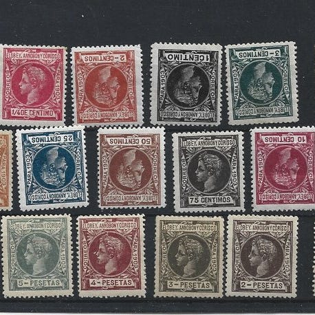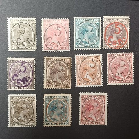 Alfonso XIII overtryksserie fra Fernando Poo, Edifil N70/73, tilstand ny uden gum. Klik på den blå "gå til varen" knap, for at købe eller byde på denne vare. Den samlede pris vil blive vist inden du afgiver dit bud.