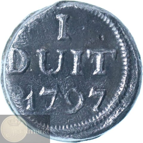 Cupert VOC Holland-øre fra VOC-perioden ca. 1726–1804 med incusum forside og incusum bagside med kronet hollandsk provinsielt våbenskjold; denominasion Misslag VOC.10 Holland duit, vægt 3,10 g, VF–XF, ikke certificeret. Klik på den blå "gå til varen" knap, for at købe eller byde på denne vare. Den samlede pris vil blive vist inden du afgiver dit bud.
