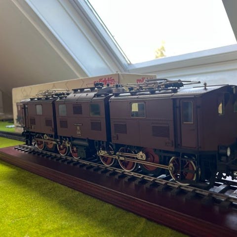 Mærke Märklin, Skala 1, tenderlokomotiv 5602, katalognummer 5502, i god stand, uden original emballage, AC-strømforsyning, analog styring, T18, testet og i gang. Klik på den blå "gå til varen" knap, for at købe eller byde på denne vare. Den samlede pris vil blive vist inden du afgiver dit bud.