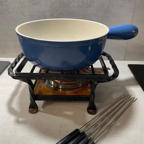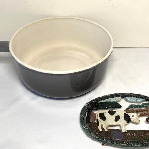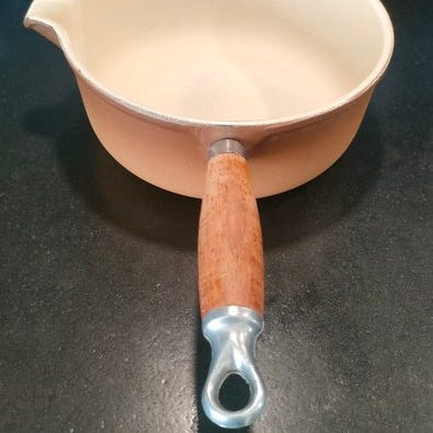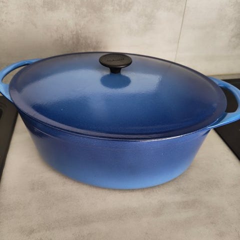 Vintage cocotte, Le Creuset, model E, i støbejern. Vintage model, meget smuk farve.