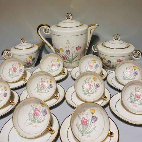 75 stykker ægte porcelæn med bregne-dekoration og guldbesat kant.