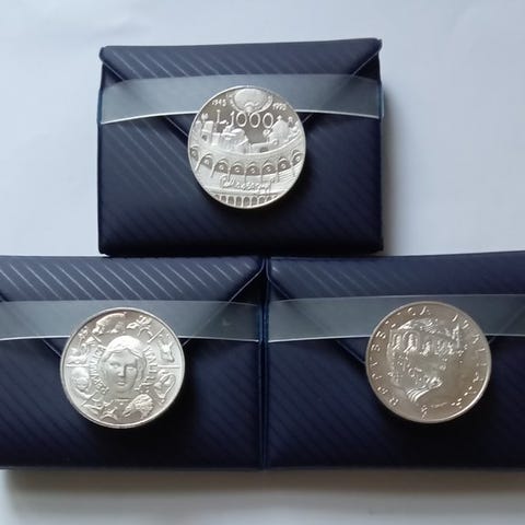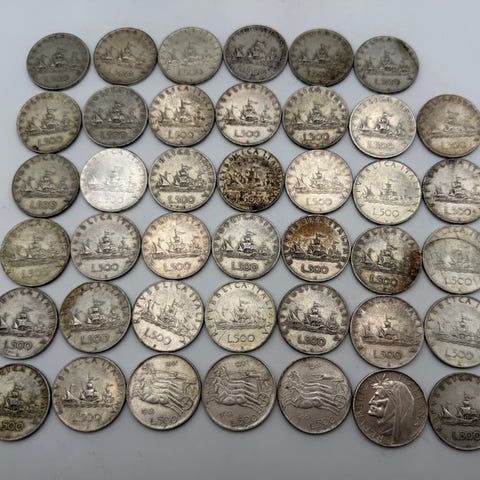 Lod af fire sølvmønter fra Kongeriget Italien, Umberto Primo, Vittorio Emanuele II. To lire 1897 Umberto I. Bevaringsstand: bb, vægt 10 gram i 835 sølv. To lire 1899, Umberto I. Sjælden, kun 610.000 eksemplarer eksisterer. Bevaringsstand: bb, sølvindhold 835, vægt 10 gram. 50 centesimi 1863 M, Vittorio Emanuele II. Bevaringsstand: spl, sølvindhold 835, vægt 2,5 gram. 20 centesimi 1863 M, bevaringsstand: spl, sølvindhold 835, vægt 1 gram. Alle mønter er vurderet af erfarne numismatikere, med lovlig provenance eller fra samlinger. Af logistiske grunde sender jeg ikke til Tyskland eller til lande uden for EU.