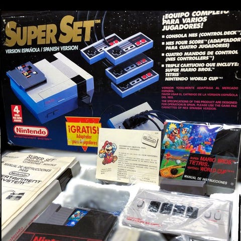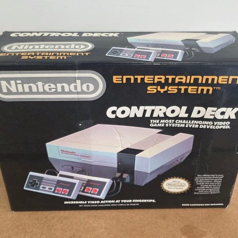 Nintendo NES-konsol i originalkarton med styroporindsats