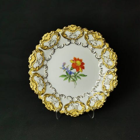 Gebäckteller Meissen håndmalet i dekorationen Indisch Grün med guldkant, 1. sortering, 14 cm i diameter.