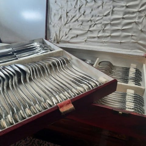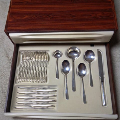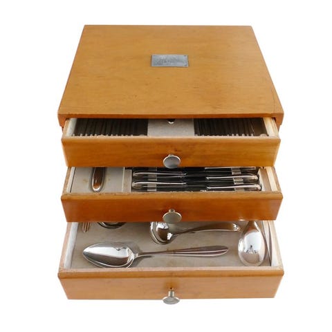 Smukt verzilveret bestiksæt, lavet mellem 1952 og 1975 af Gero, Gerritsen Zeist. Bestiksættet består af 43 dele i deres originale kasse. Modellen, kaldet Perfection, er et design, der er typisk for 1950'erne, med mere moderne, strømlinede konturer, der tydeligt adskiller sig fra design fra den første halvdel af århundredet. Bestiksættet er egnet til 6 personer og består af:
