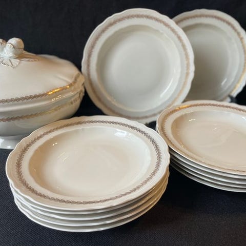Elegant sæt med 10 Limoges suppetallerkener fremstillet af Lafarge & Cie (Frankrig).