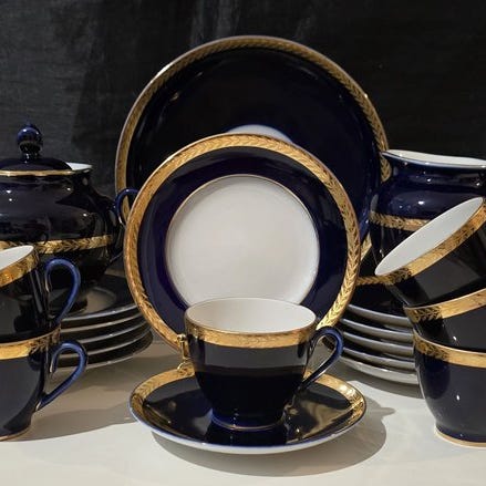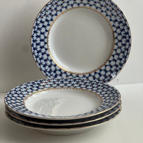 Bring traditionen fra den russiske kongelighed ind i dit hjem med Lomonosov Porcelæn Cobalt Net. Dette porcelæn er fremstillet på den russiske kejserlige porcelænsfabrik. Tallerkenerne er håndmalede og udsmykket med ægte 22-karat guld.