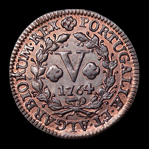 Portugal, Madeira, kobber X Reis mønt fra 1750 under D. José I’s regering, sjælden i denne tilstand, diameter 34,30 mm. Klik på den blå "gå til varen" knap, for at købe eller byde på denne vare. Den samlede pris vil blive vist inden du afgiver dit bud.