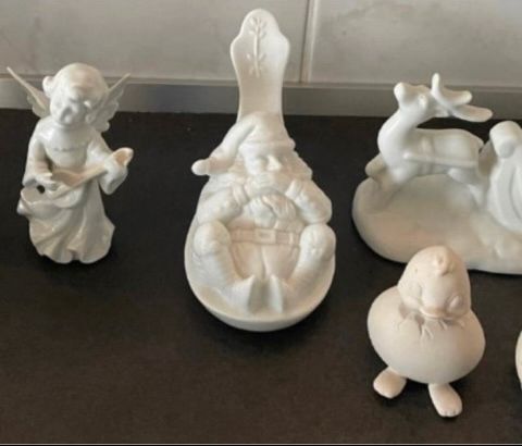 Sæt bestående af gipsfigurer i forskellige julemotiver, inklusive en nisse, en sneemand og en juletræ. Sættet indeholder også små beholdere med maling i flere farver samt en pensel til påføring. Egnet til kreativ maling og dekoration.