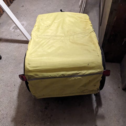 Burley tail vagon cykelanhænger i gul og sort farve. Designet til at transportere hund sikkert bag på cyklen. Inkluderer aftagelige forhjul til at omdanne anhængeren til en klapvogn. Nypris 3400kr Extra hjul nypris 700kr Ca 3år gammel Brugt til min 3kg yorksire kamphund