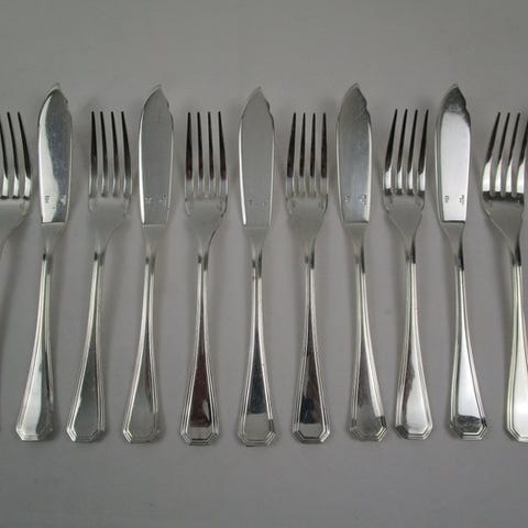 Christofle - Gaffel (12) - bånd - Sølv metallic - Fiskegafler