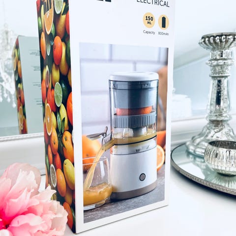 Sowden Juicer citruspresser i creme og blå farver. Fremstillet i materialer egnet til madkontakt. Designet til effektiv udpresning af citrusfrugter.