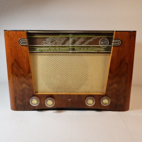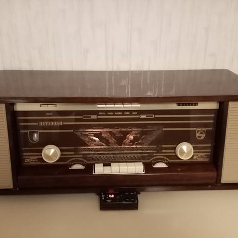 Philips B4X61A + Bluetooth - bordradio fra 1956 i varierende fysiske tilstande, med testet og fungerende Bluetooth, vægt 15 kg, inklusive et ekstra item. Klik på den blå "gå til varen" knap, for at købe eller byde på denne vare. Den samlede pris vil blive vist inden du afgiver dit bud.