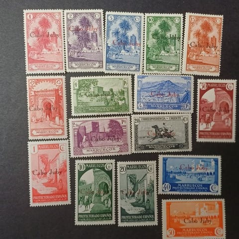 Edifil 4Q, marokkanske frimærker brugt i Cabo Juby. Sjældne.