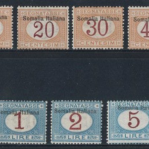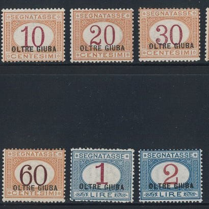 Segnatasse fra Italiaans Jubaland, 1925–1926, postfrisk med originalgum, bagside signeret, Sassone 22, tandning 13,5; katalogværdi €3000 (Sassone 2019). Klik på den blå "gå til varen" knap, for at købe eller byde på denne vare. Den samlede pris vil blive vist inden du afgiver dit bud.