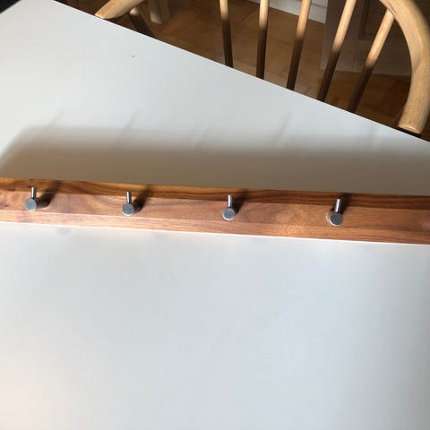 Knagerække i træ, håndlavet er cirka en meter i længden
