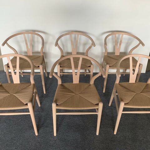 Vi sælger vores 6 elskede Wegner y stole fra privaten .. Vi her passet virkelig godt på dem og de er derfor velholdte med almindelige brugsspor .. Stolene sælges kun samlet til 22.995kr 🫶🏻🤍 Lyset er virkelig dårligt på disse billeder, så sender gerne flere .. Send pb ved interesse .. NB: Stolene er ikke på hverken mit lager eller vores gamle adresse pga sikring mod tyveri ..