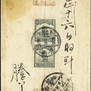 China - 1878-1949 1917/1917 - Kina 1917 Magnolia junk 9c rate redband cover U...