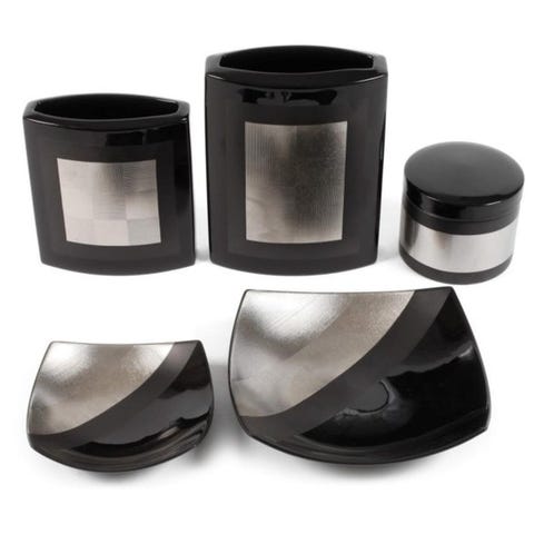 Smukt husholdningssæt i nikkeleret metal, af den parisiske guldsmed François Frionnet, model fra 70'erne, i modernistisk stil.