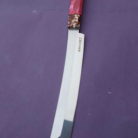 K-Tip Gyuto kombinerer den flydende alsidighed af den klassiske japanske kokkekniv med en skarpt defineret k-tip (reverse tanto) spids, hvilket giver enestående præcision til skæring, hakning og detaljerede snit. Dens lange, yndefuldt buede kant glider let gennem kød, fisk og grøntsager, mens den fine spids muliggør præcis kontrol i detaljeret arbejde.