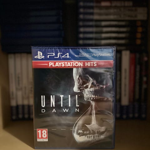 Until Dawn PlayStation 4 spil. Spillet tilhører genren horror og thriller og har en aldersgrænse på 18 år. Har aldrig spillet det, men købt det brugt på DBA en gang for lang tid siden. Dog er der ingen brugsspor og spillet kører fejlfrit.