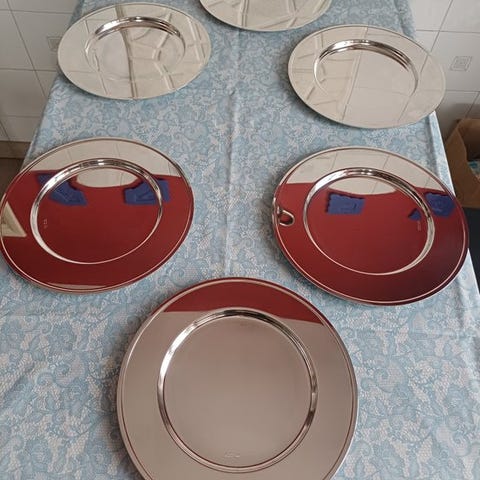 Denne teknik, kaldet 'differentiel sølvbelægning', er karakteristisk for Sambonet-produktionen i 50'erne til 70'erne, perioden hvortil servicen hører, og er genkendelig på Sambonet A.S.-stempler og indgraverede Sambonet Inox-skær.