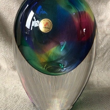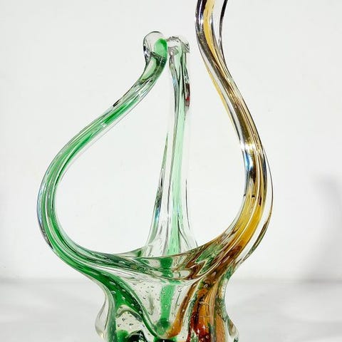 Spectakulært mundblæst glasvase, fremstillet af den franske manufaktur VA Verre. Dens strålende gule farve tiltrækker opmærksomhed og tilfører en unik lysstyrke og livlighed til ethvert interiør. Originaletiketten er ikke længere til stede, da den er for gammel, men den karakteriserer varemærkets oprindelse. Den enestående håndværkskvalitet kommer til udtryk i vaseformens og linjens unikke design, som passer lige godt i et moderne som i et klassisk indretning.