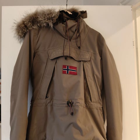 Lækker anorak i navy blå med pels-krave. Kun brugt ca. 10 dage så fremstår som ny. Dame-model i str. 42 / xl.