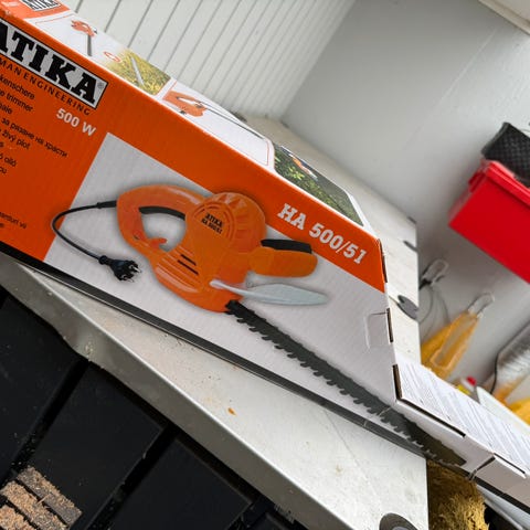 Adano. Effekt 500 W. Knivens længde 450 mm. Brugt meget lidt og sælges kun fordi den ikke skal bruges mere. Kr 150,-.