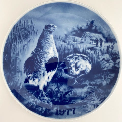 Flot blå platte fra Tove Svendsen Kunsthåndværks serie af jagtplatter.