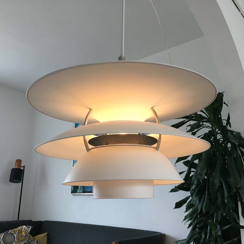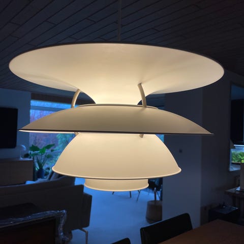 Louis Poulsen PH lampe designet af Poul Henningsen. Lampen har en karakteristisk skærm med flere lag, der giver et diffust og blødt lys.