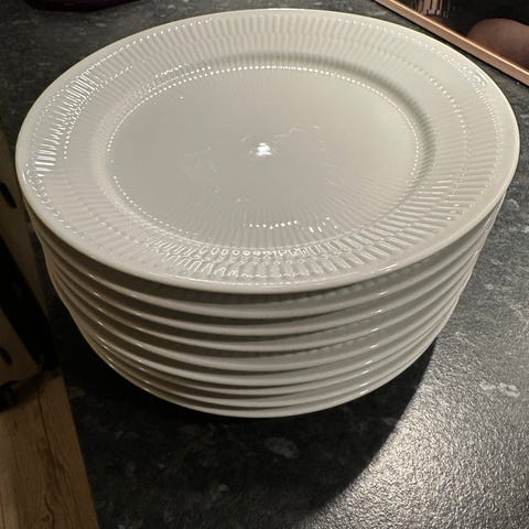 Royal Copenhagen Hvid Halvblond 27cm tallerken i hvid porcelæn med karakteristisk mønster. 8 stk. sælges kun samlet!