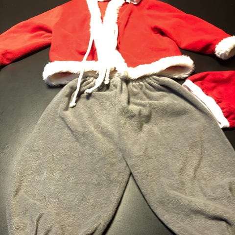Nissepige dragt str. 3XL. 3 nissehuer. De 2 er med fletninger. + 1 stor julesok.