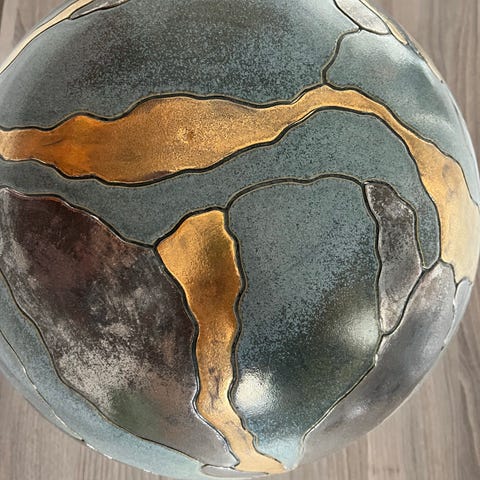Tove Balling .Keramik lys kugle grøn/grå/blå
