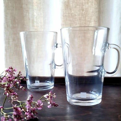 Fremstillet i Frankrig, af hærdet gennemsigtigt glas, med Nespresso-logo