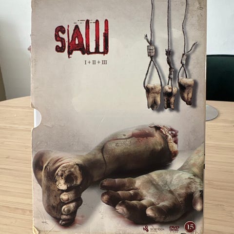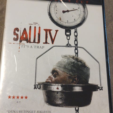 Saw DVD Box Sæt indeholder flere film i Saw-serien. Hver DVD er indpakket i original emballage med cover art. Sættet inkluderer film med titler og varierende længder, egnet til samlere eller fans af Saw-franchisen.