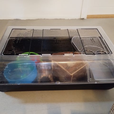 Sælger et rummeligt hamsterbur med masser af tilbehør. En komplet pakke, hvor du ikke mangler noget. Ideel til både ny hamster eller som opgradering.